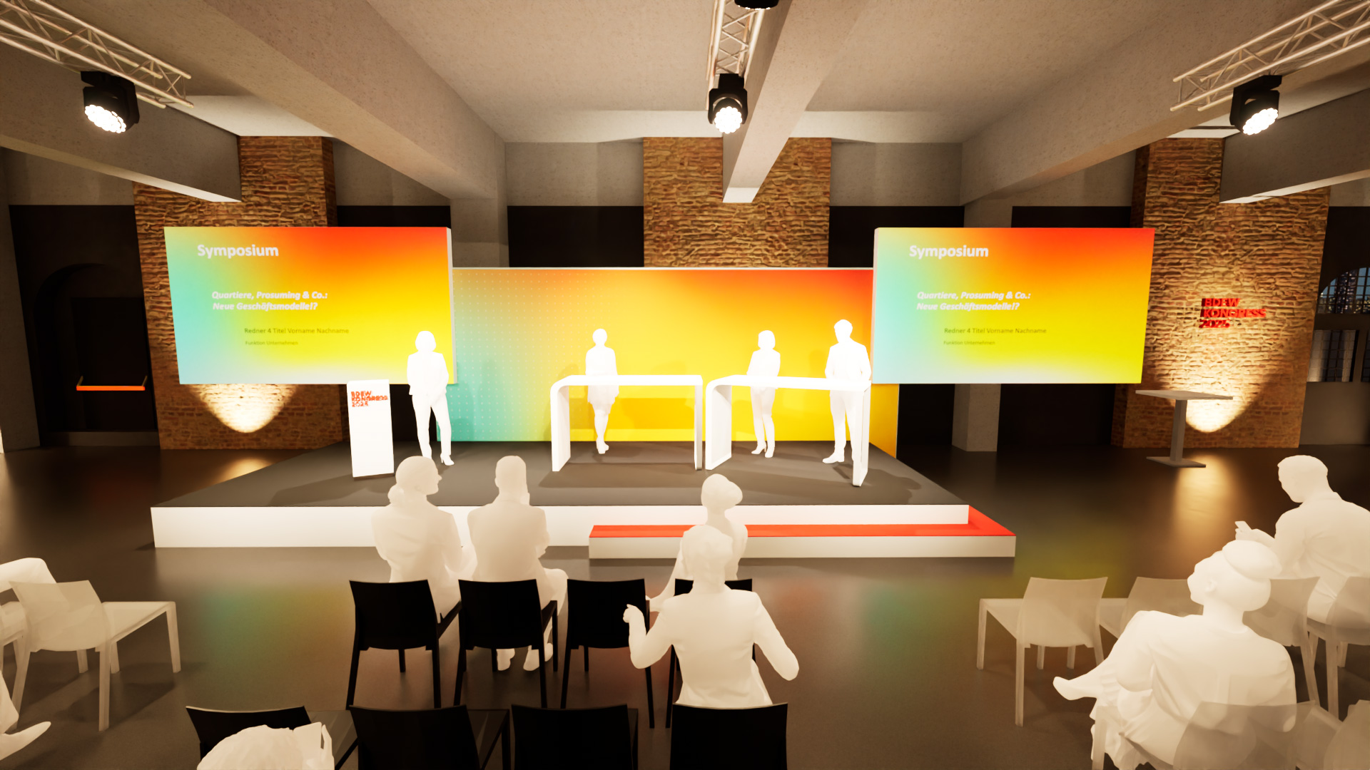 Visualisierung der Themenwelt "Symposium" auf dem BDEW Kongress 2025 mit Blick auf die Bühne