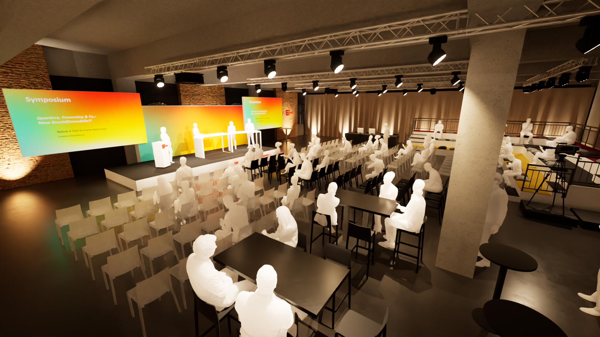Visualisierung der Themenwelt "Symposium" auf dem BDEW Kongress 2025 mit Blick von oben