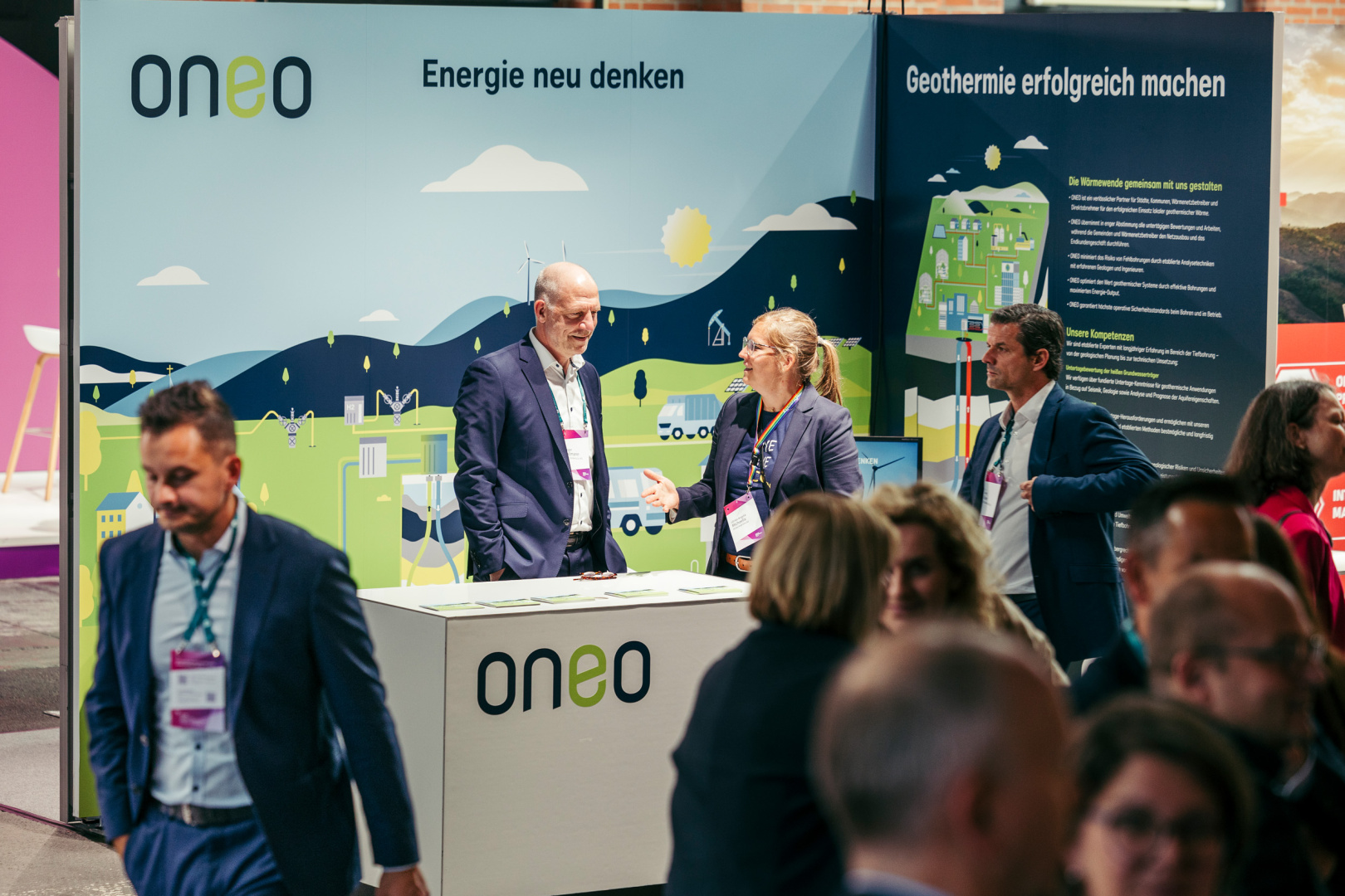 Menschen unterhalten sich in der Ausstellung des BDEW Kongress 2024