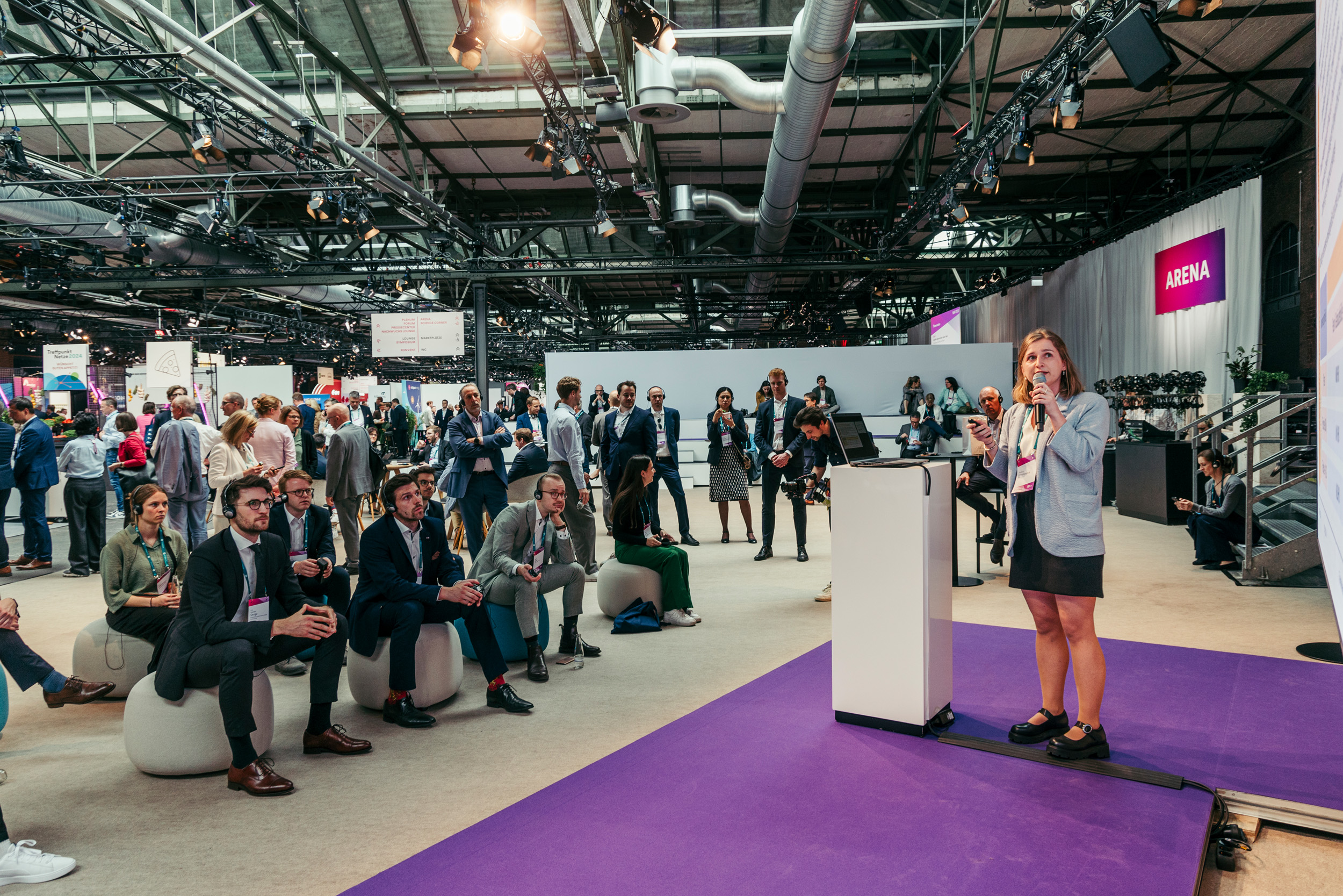 eine Frau hält einen Vortrag in der Science Corner auf dem BDEW Kongress 2024